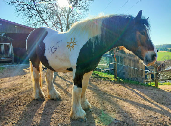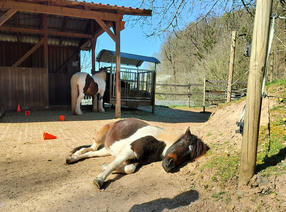 Unsere Pferde leben in einem weitläufigen Offenstall mit Paddocktrail. Auf einer Fläche von ca. einem Hektar findet die Therapie überwiegend im Freien und bei jedem Wetter statt. Es stehen überdachte Stallbereiche, eine Scheune und ein beheizter Bauwagen zur Verfügung, falls eine Therapie im Freien mal nicht möglich sein sollte.